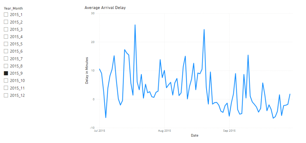 After creating the two Date Tables and the needed relationships we are ready to create our Measure. In my example I am going to create a measure that calculates the average Arrival Delay of the flights. The measure is created using this DAX code: